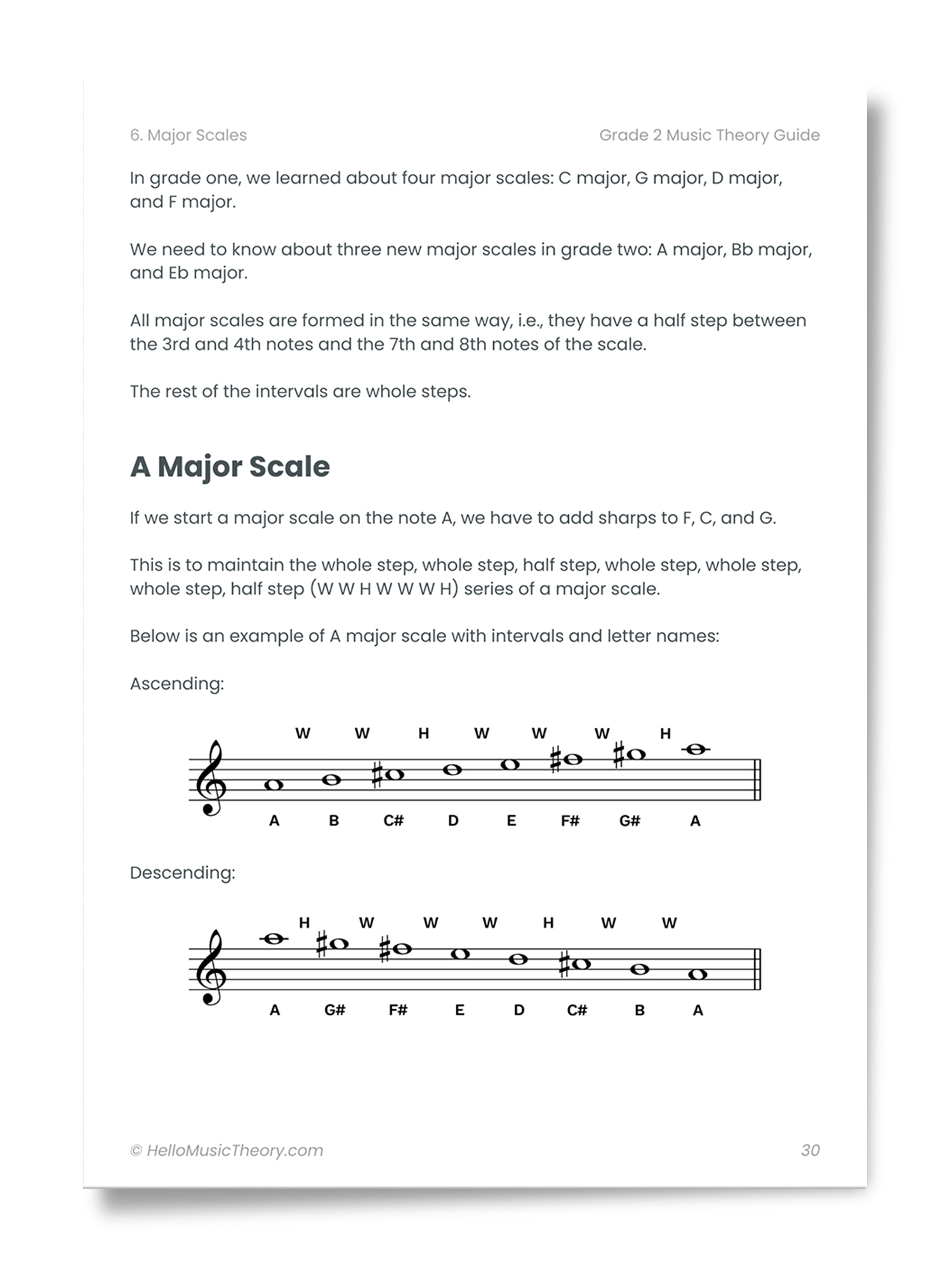 Discover three new major scales: A major, Bb major, and Eb major. We'll learn their construction, fingerings, and key signatures. Learn to write them in both ascending and descending forms while understanding the patterns of whole steps and half steps that create these scales.