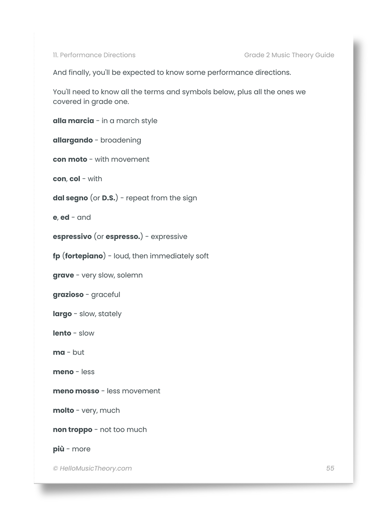 And finally, in this last chapter, we look at the new Italian musical terms and symbols for Grade 2. Learn important tempo markings, dynamic instructions, and expressive directions. Study essential symbols like marcato, tenuto, and 8va, and understand how they affect musical performance.