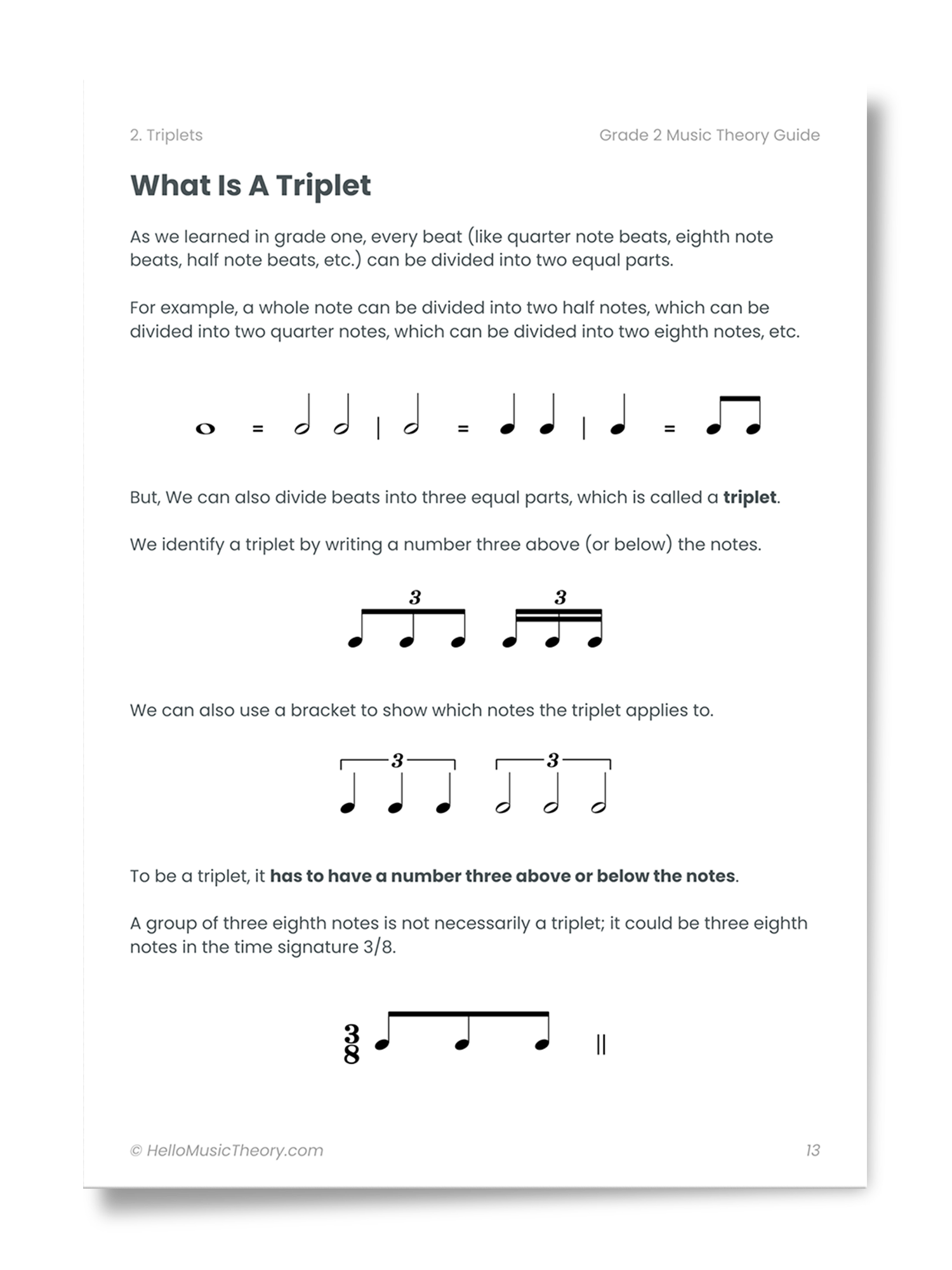 Here we're going to look at the concept of triplets - three notes played in the time of two. Discover how to read and write triplets, understand their time values, and learn how they can include rests and different note values.
